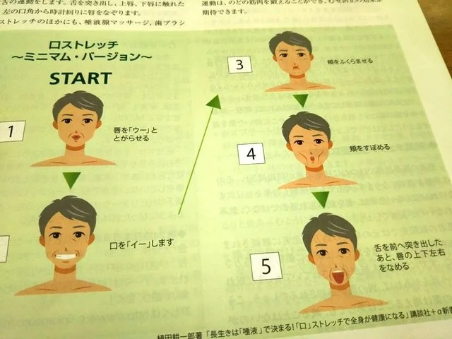 この運動を行うと唾液の分泌も改善されるので、口中のべたつき、口臭、話すときに舌がひっかかる、嚥下障害や誤飲などが改善されます。
