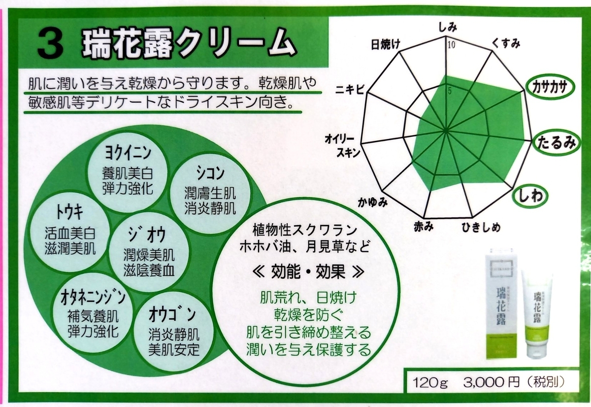 瑞花露薬用保湿クリーム120g 3,300円税込